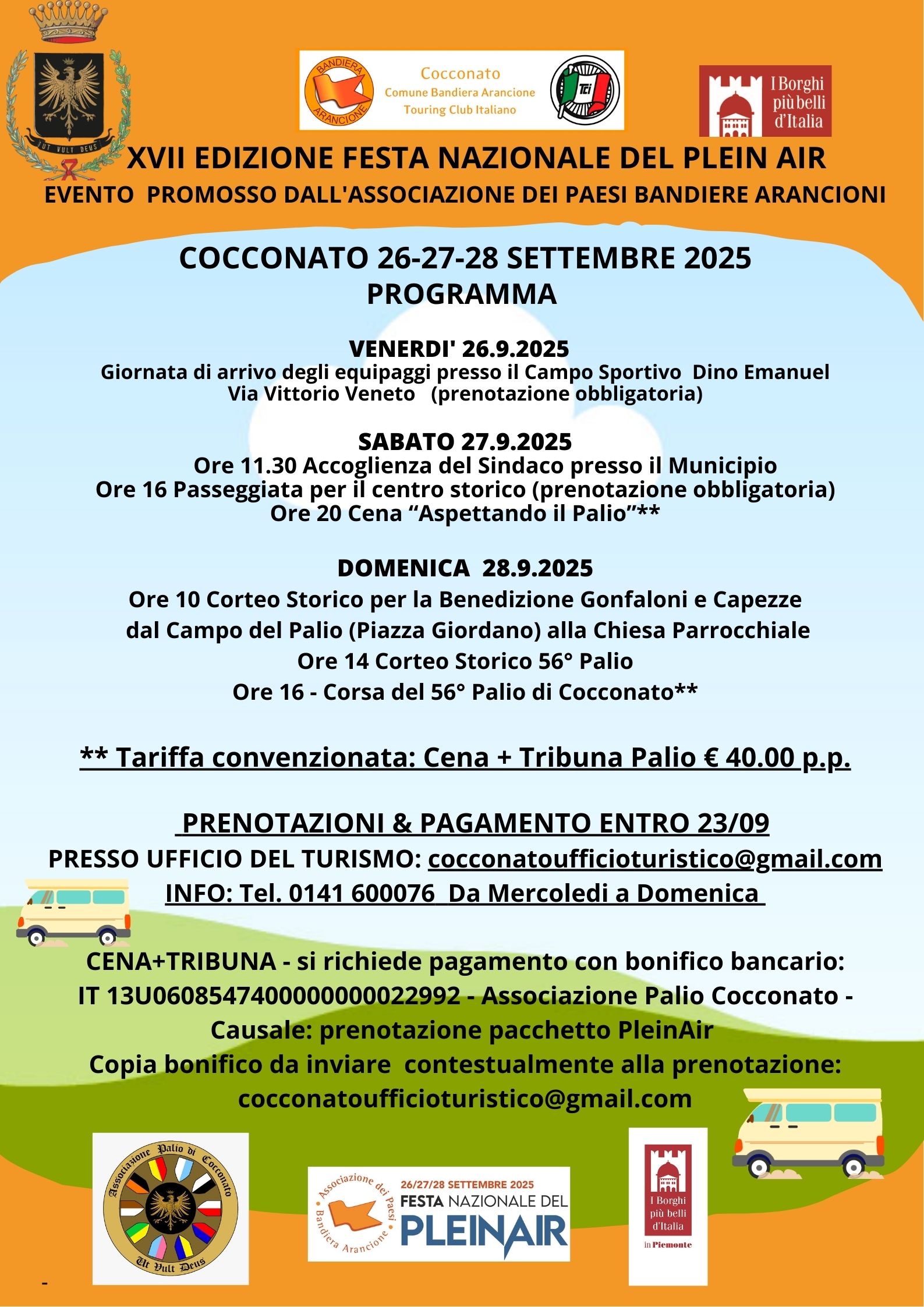 Descrizione Venerdì 26 - Sabato 27 - Domenica 28 Settembre 2025 XVII° Edizione Festa Nazionale del PleinAir Programma allegato